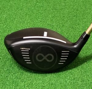 柏原プロはキャロウェイのツアー担当者が白いペイントで書いているらしいのですが、難しいので白のビニールテープをカットして張ってみました。